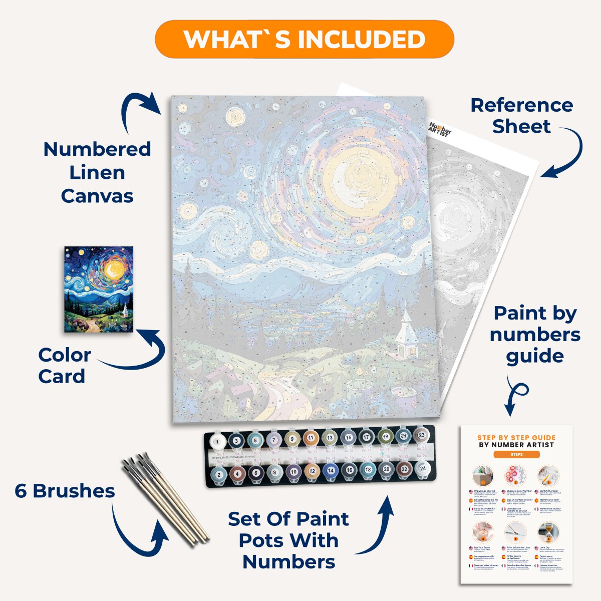 Our kits come with high-quality, fast-drying acrylic paints, perfect for the Paint by Numbers technique. You'll enjoy vibrant colors that dry quickly for a seamless painting experience.