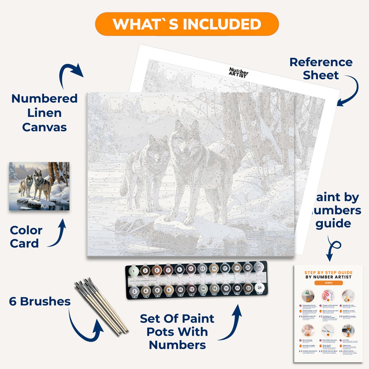 Deje que los lobos de la nieve traigan paz y belleza a su vida mientras crea una impresionante obra maestra.
