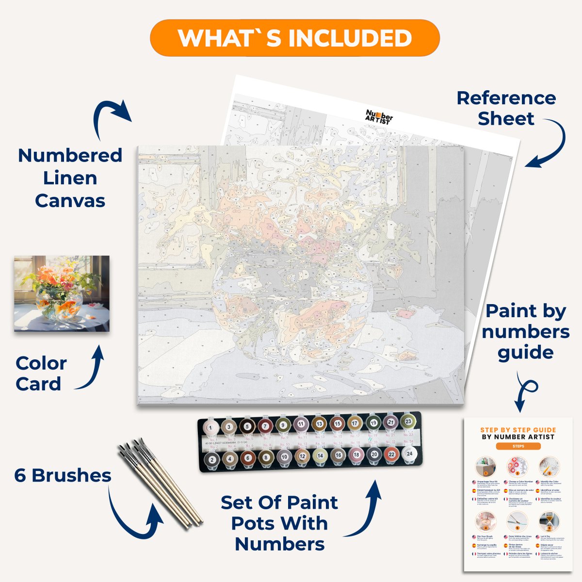 Préparez votre Peinture par Numéros Kit pour une merveilleuse expérience de peinture.