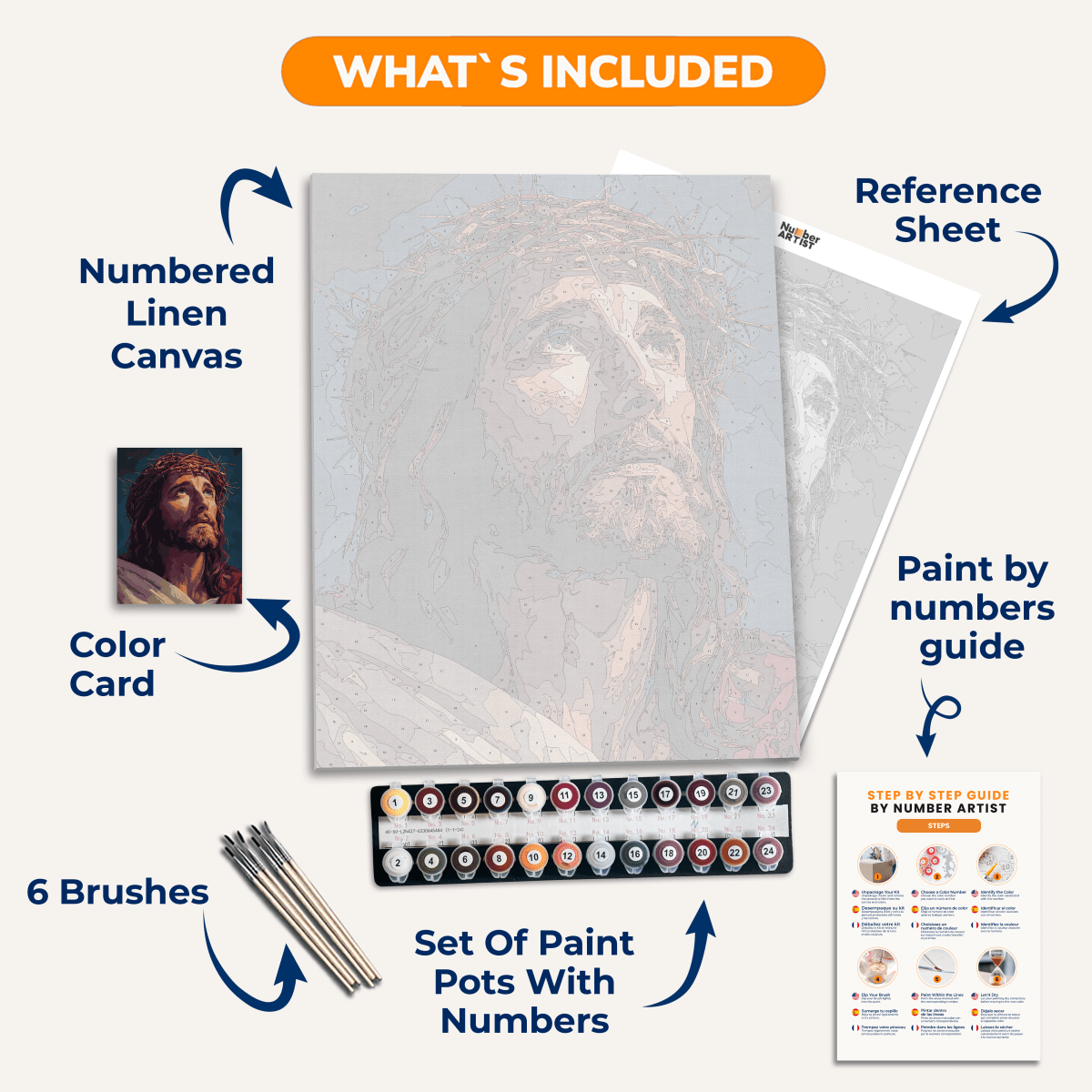 Découvrez la meilleure toile en lin et les pinceaux en bois de qualité supérieure avec chaque kit.