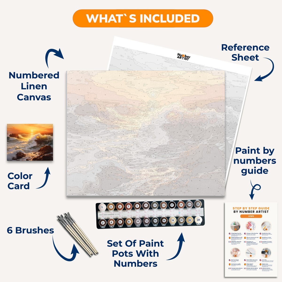 Nos kits sont livrés avec des peintures acryliques à séchage rapide de haute qualité, parfaites pour le Peinture par Numéros technique. Vous apprécierez des couleurs vibrantes qui sèchent rapidement pour une expérience de peinture transparente.