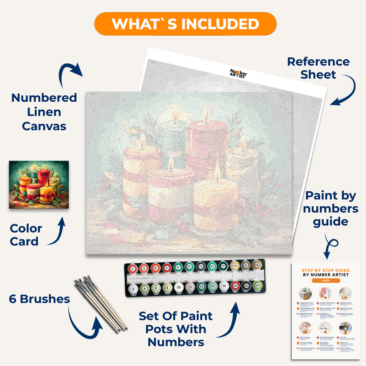 Experience the finest linen canvas and premium wooden brushes with every kit.