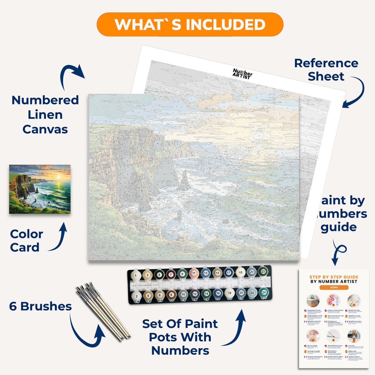Our kits come with high-quality, fast-drying acrylic paints, perfect for the Paint by Numbers technique. You'll enjoy vibrant colors that dry quickly for a seamless painting experience.