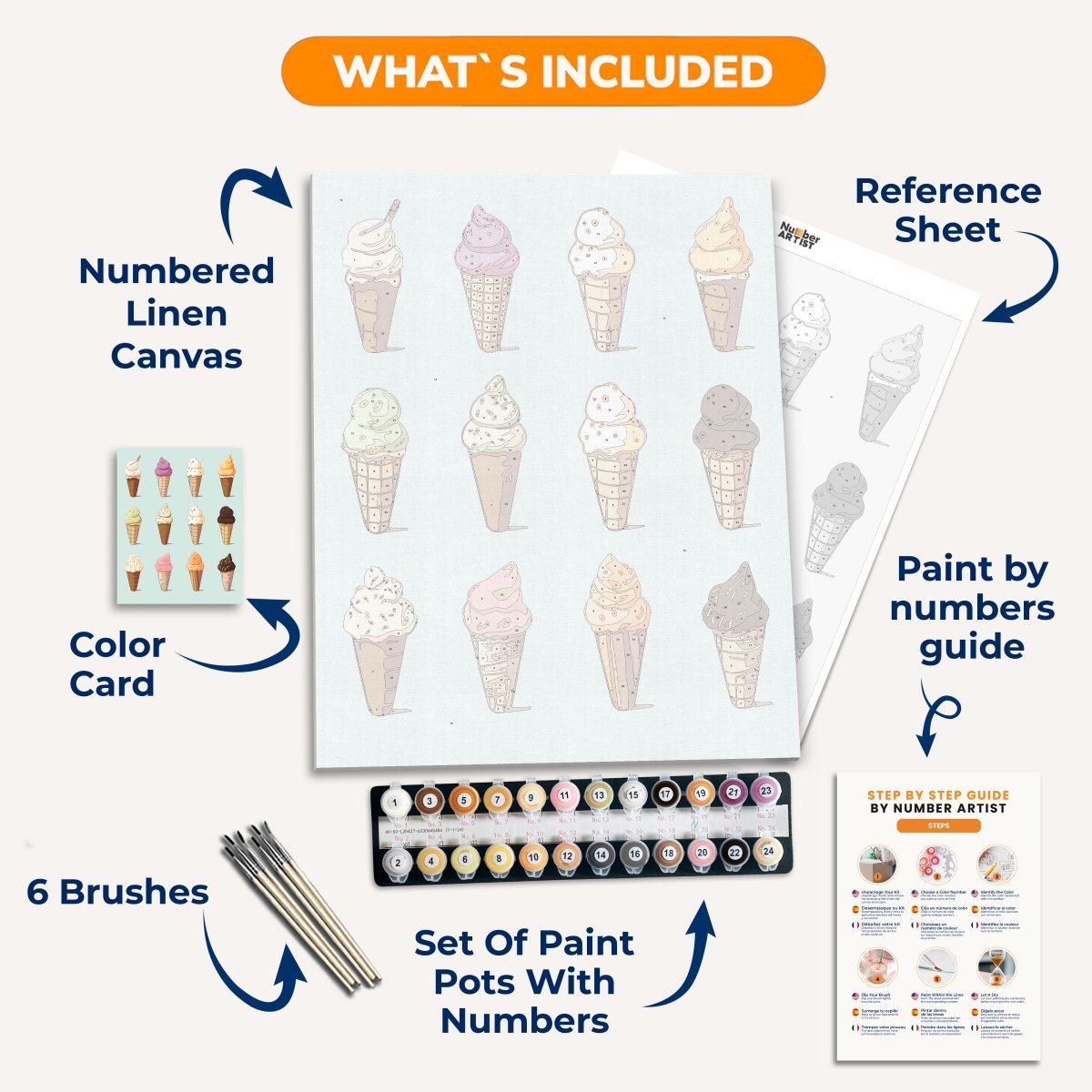 Experience the finest linen canvas and premium wooden brushes with every kit.