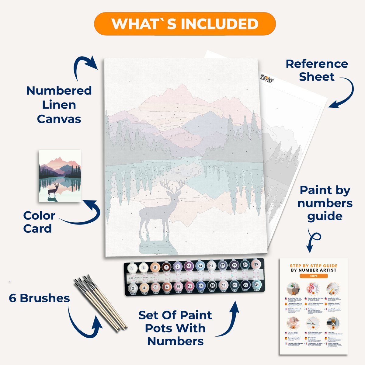 Our kits come with high-quality, fast-drying acrylic paints, perfect for the Paint by Numbers technique. You'll enjoy vibrant colors that dry quickly for a seamless painting experience.