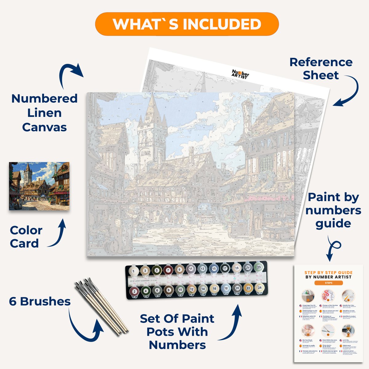 Our kits come with high-quality, fast-drying acrylic paints, perfect for the Paint by Numbers technique. You'll enjoy vibrant colors that dry quickly for a seamless painting experience.