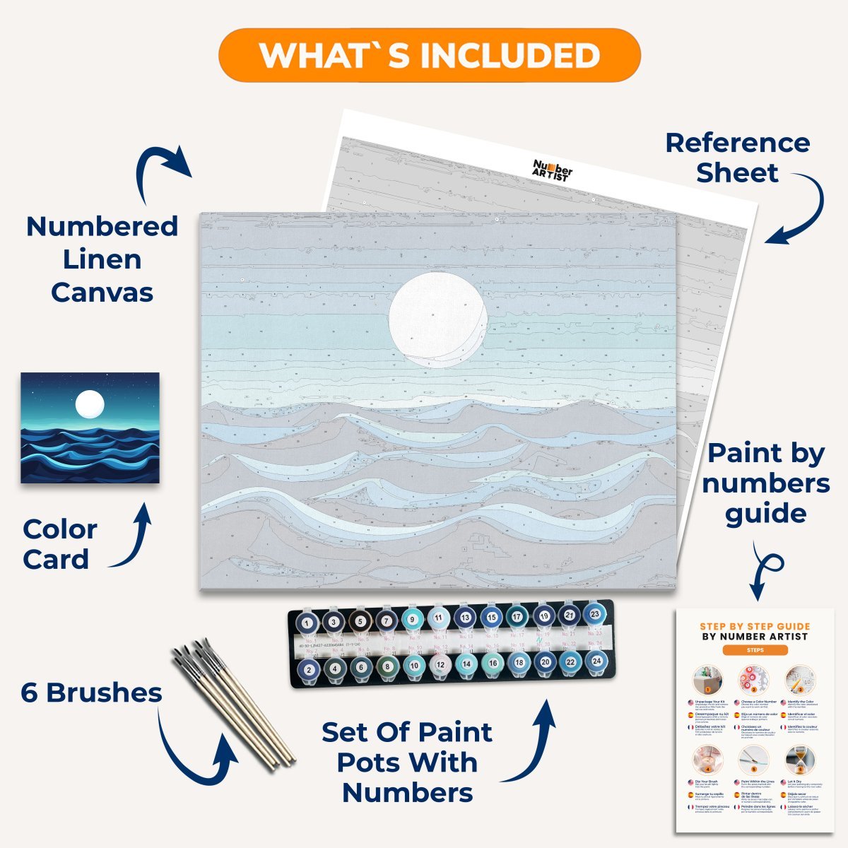 Experience the finest linen canvas and premium wooden brushes with every kit.