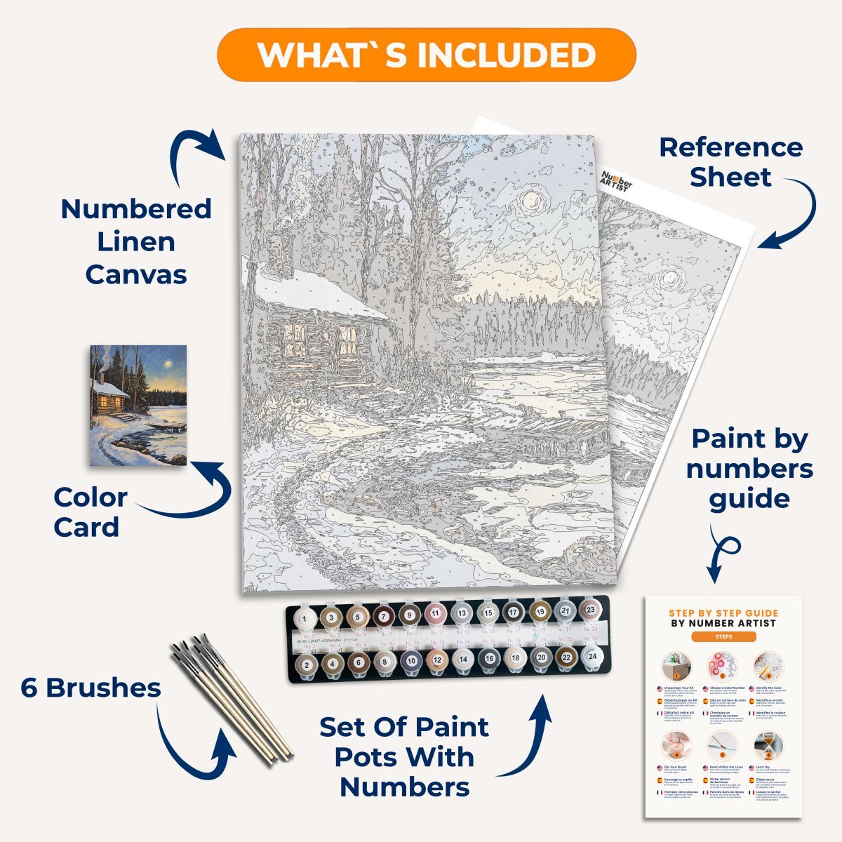 Experience the finest linen canvas and premium wooden brushes with every kit.