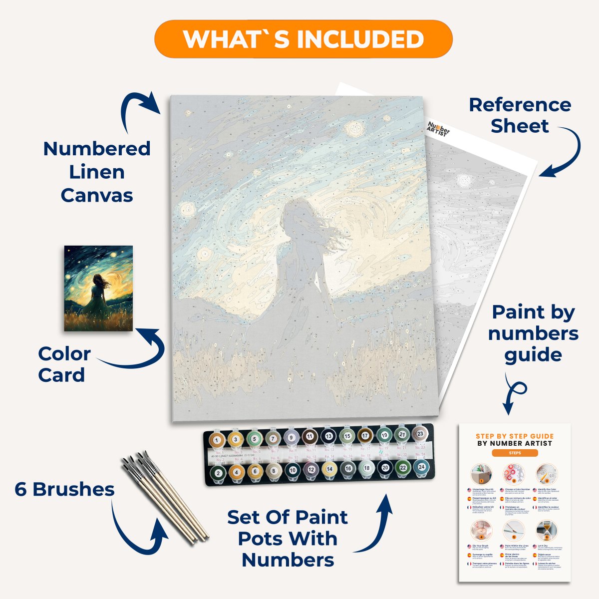 Our kits come with high-quality, fast-drying acrylic paints, perfect for the Paint by Numbers technique. You'll enjoy vibrant colors that dry quickly for a seamless painting experience.