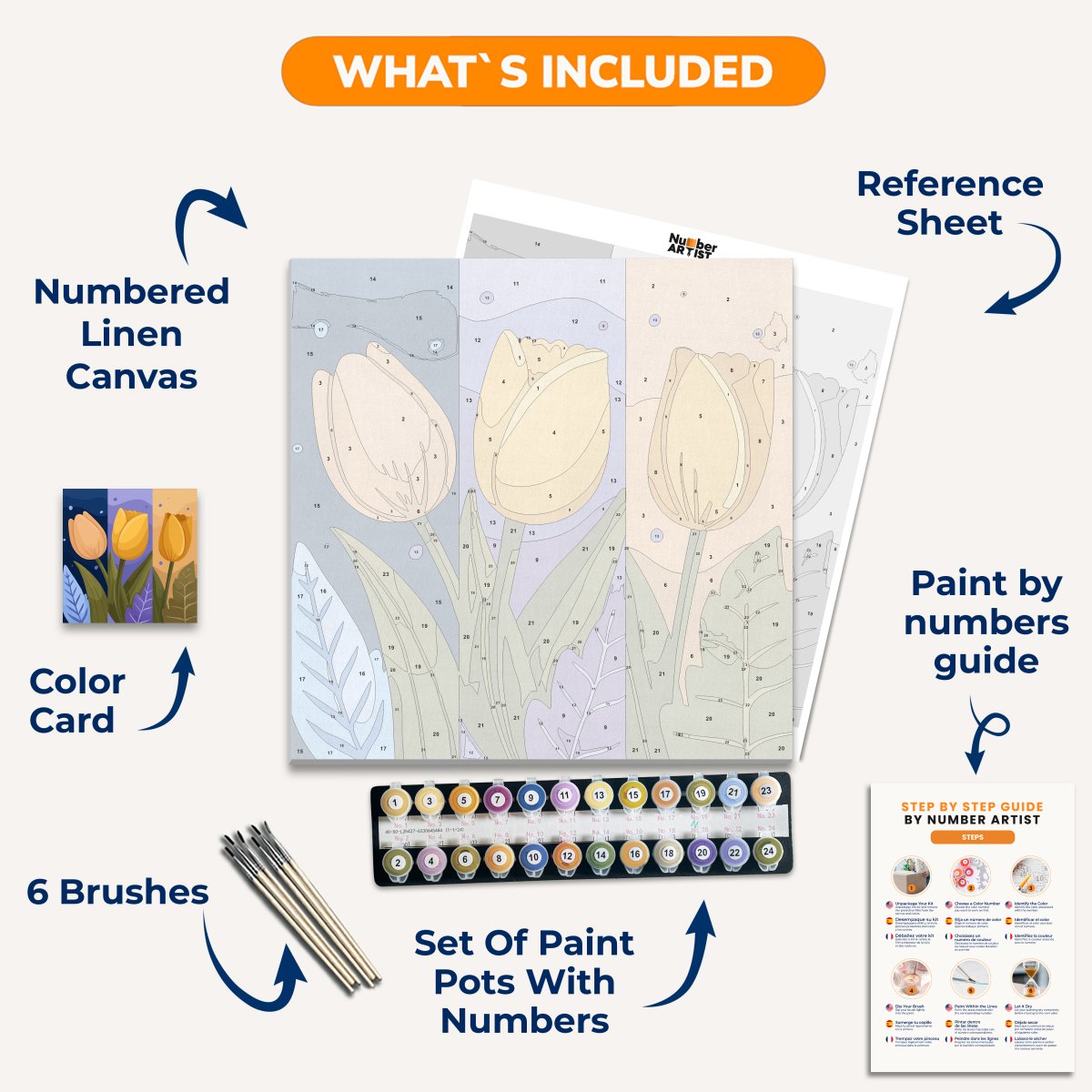 Our kits come with high-quality, fast-drying acrylic paints, perfect for the Paint by Numbers technique. You'll enjoy vibrant colors that dry quickly for a seamless painting experience.