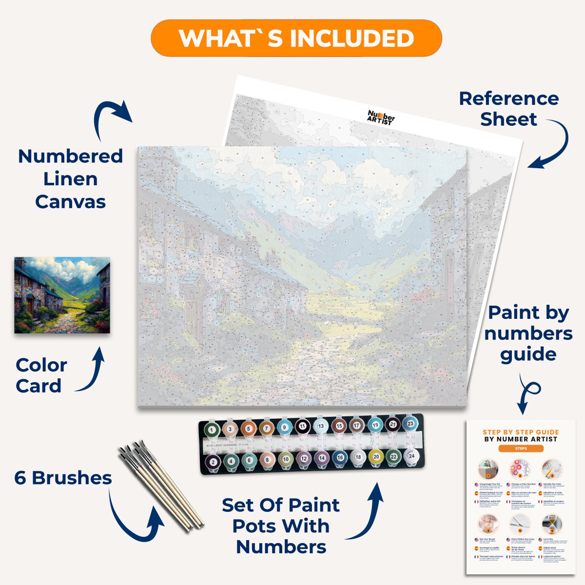 Our kits come with high-quality, fast-drying acrylic paints, perfect for the Paint by Numbers technique. You'll enjoy vibrant colors that dry quickly for a seamless painting experience.